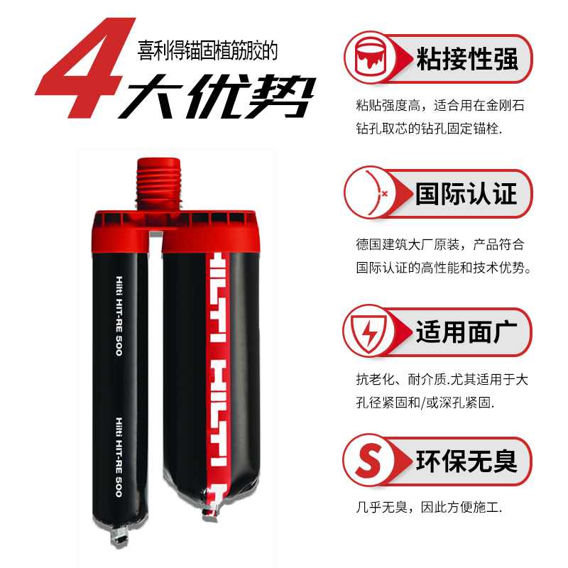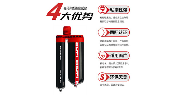并且喜利得在植筋膠使用觀念中賦予了其嶄新的界說。喜利得植筋膠其突出特點是高強(qiáng)粘結(jié)力,尤其適用于大尺寸鋼筋、螺桿,錨固效果如同預(yù)埋結(jié)構(gòu)、杰出的耐久、抗震與焊接適應(yīng)性、可用于水下安裝(除海水外)、安裝操作簡單,無需特殊工具、作業(yè)時間靈活,這眾多的特點買家?guī)Я肆烁哔|(zhì)量的服務(wù),省去了買家許多不必要的麻煩,讓買家不僅買的安心還用得放心。